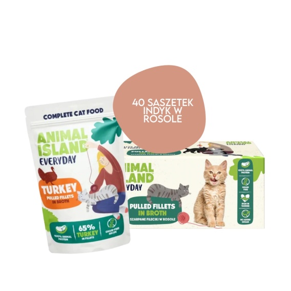 Animal Island 40x85g Indyk fileciki w rosole - karma mokra dla kota