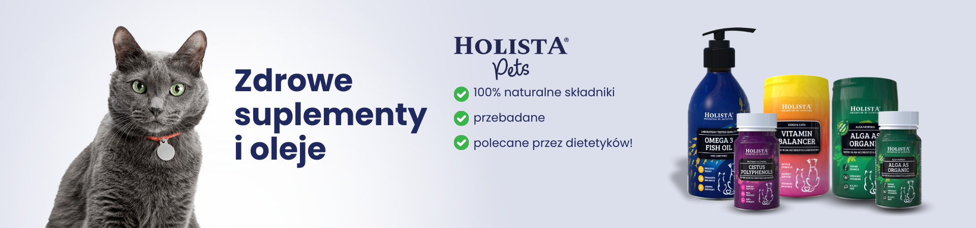 Holista Pets to polska marka, której celem jest tworzenie produktów żywieniowych dla zwierząt o najwyższym możliwym standardzie. Pragnie dawać gwarancję ponad wszelką wątpliwość, że w misce Twojego zwierzaka znajdą się tylko certyfikowane, przebadane, czyste ekologicznie, pozyskiwane z odpowiedzialnych źródeł składniki. HolistaPets wierzy, że taki model żywienia może zapewnić zwierzętom dłuższe i zdrowsze życie. Podchodzi także z szacunkiem i troską do miejsca w którym żyjemy dlatego wszystkie opakowania nadają się w 100% do recyklingu. Producent wspiera europejski przemysł nie stosując w produkcji swoich preparatów niskiej jakości komponentów chińskiego pochodzenia. HolistaPets to nie tylko zdrowsze żywienie to także holistyczny styl życia i troska o planetę, na której żyjemy.