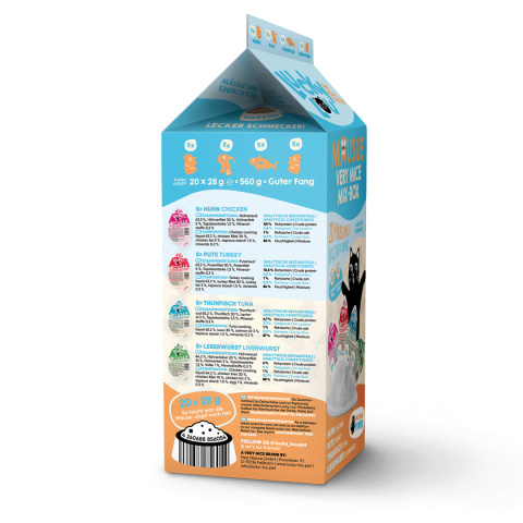Lucky Lou Mäusle jest karmą uzupełniającą, abyś mógł rozpieszczać swojego kota urozmaicając jego codzienne menu. Więc zrób to! Pokocha Cię za różnorodność w misce. A jeśli masz kocich przyjaciół: nie odwiedzaj ich z pustymi łapkami! Zabierz ze sobą myszki Lucky Lou.