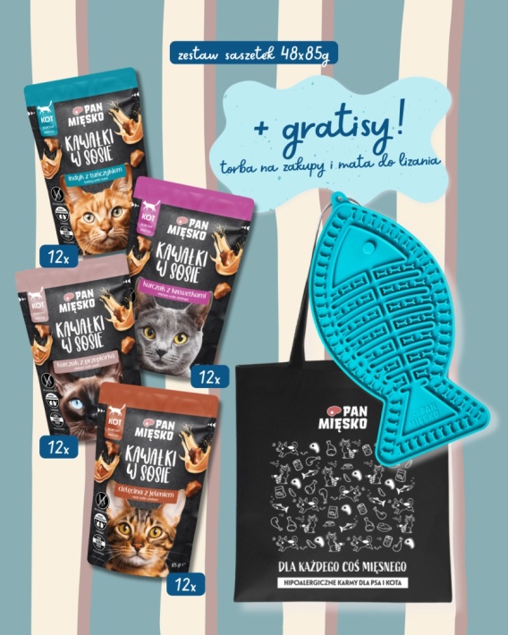 Pan Mięsko mix smaków 48x85g ZESTAW + GRATISY mata do lizania dla kota i torba na zakupy