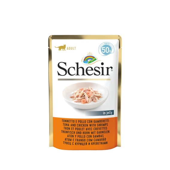 Schesir tuńczyk z kurczakiem i krewetkami w galaretce - karma dla kota 50g