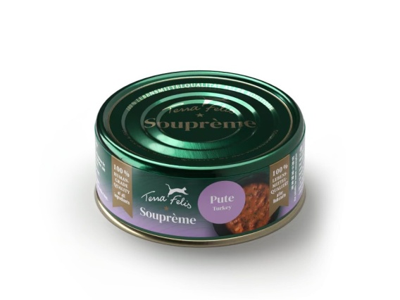 Rozkoszuj swojego kota urokami natury z Terra Felis Souprème Turkey, kremową zupą stworzoną w 100% ze składników jakości spożywczej. Ta kolekcja, opracowana przez weterynarzy, powstaje w naszym własnym zakładzie produkcyjnym na bawarskiej wsi, gdzie surowe kontrole jakości gwarantują perfekcję. Składa się z ponad 93% wysokiej jakości mięsa i bogatych w składniki odżywcze podrobów, a także bogatego, gładkiego bulionu. Zapewnia to naturalny smak i pyszny aromat, które przyciągną nawet najbardziej wybredne koty.