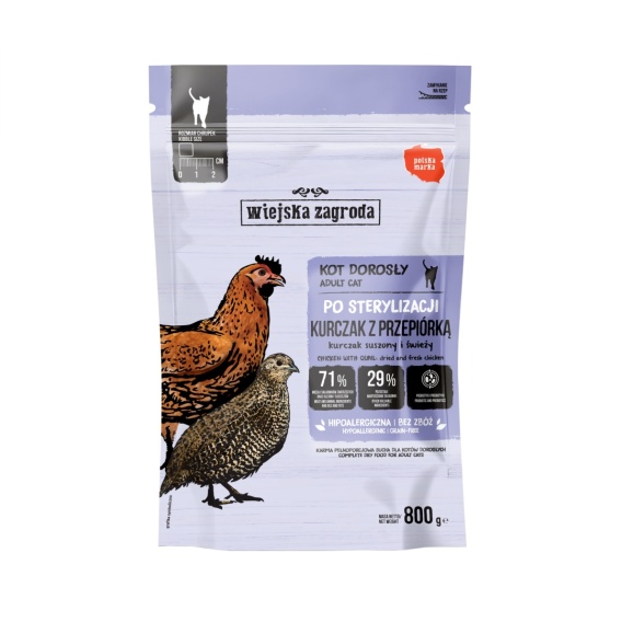 Wiejska Zagroda kurczak z przepiórką - karma sucha dla kota po sterylizacji 800g