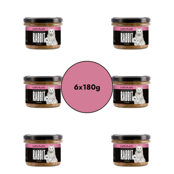 Zestaw Cats Plate Królik z Indykiem - pełnowartościowa karma dla kotów i kociąt w słoiczku 6x180g