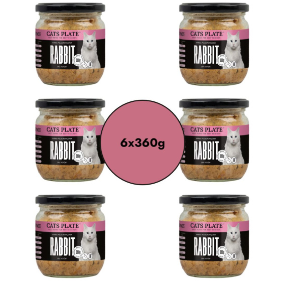 Zestaw Cats Plate Królik z Indykiem - pełnowartościowa karma dla kotów i kociąt w słoiczku 6x360g
