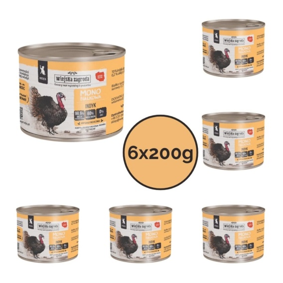 Zestaw Wiejska Zagroda karma monobiałkowa Indyk dla kociąt 6x200g